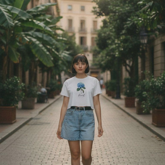This crop top is made of 100% combed cotton, which makes the shirt extremely soft and more durable than regular cotton shirts. The relaxed fit and dropped shoulders ensure comfortable wear, while the cropped length makes it perfect for spring and summer.